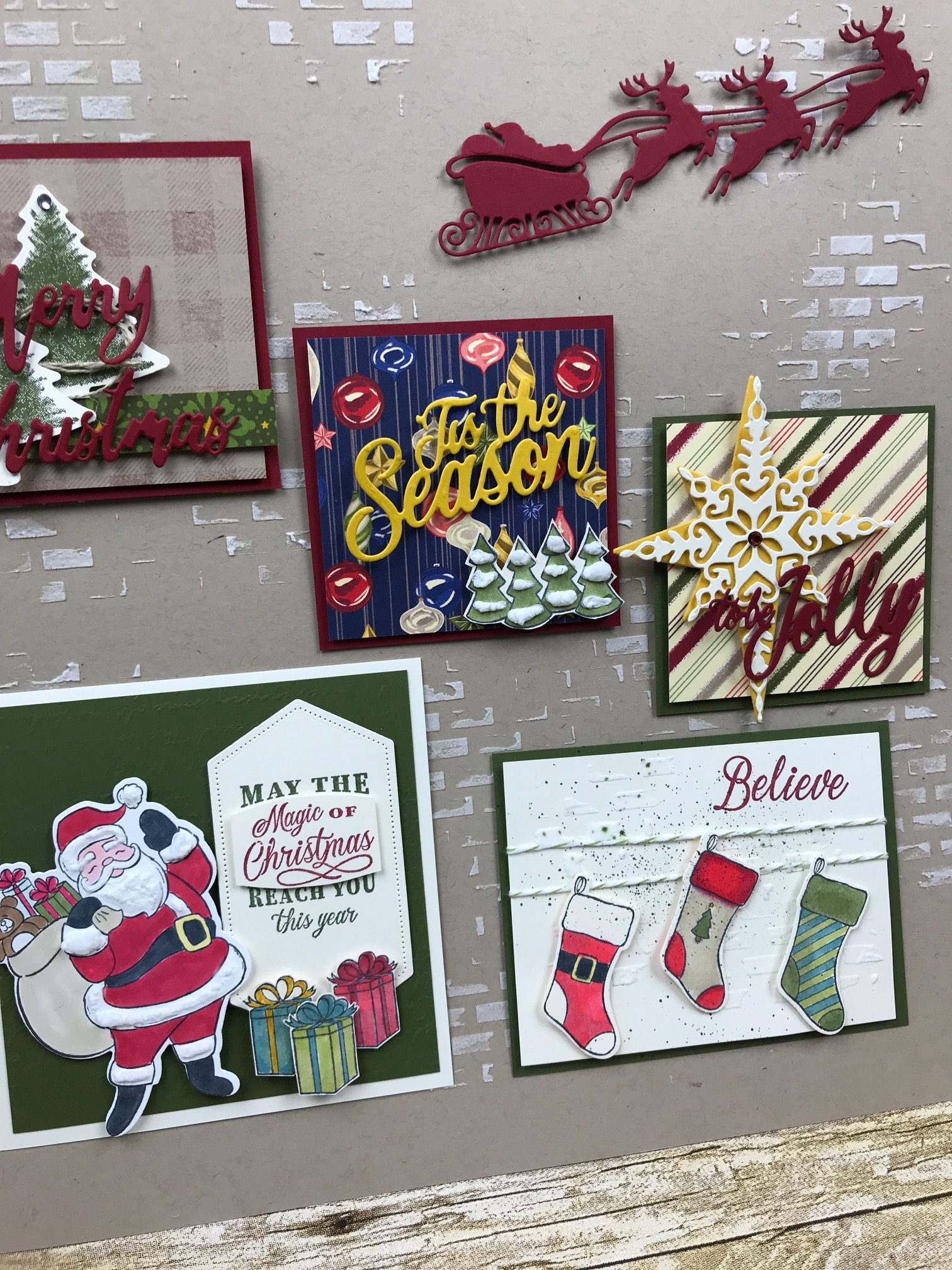 I love, love, love making samplers! There is something so sweet about creating a bunch of tiny vignettes that all coordinate together 🙂 I can’t seem to stop with these lol. I am in Las Vegas for work in a training class for the two weeks before Christmas…Santa is struggling a bit being out of town. The Santa in the sampler is the cutest thing evah! He is so much fun to color.