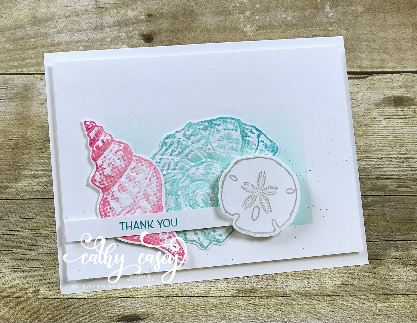 I have another soft & sweet card for you featuring the Sand & Sea Suite. I just love the way the embossing folder adds so much to the shells. Once again I used my favorite blending brush to add subtle color to the background. This time I created a rectangular mask and added the color to the inside of the rectangle. Overall the effect is simple and lovely.