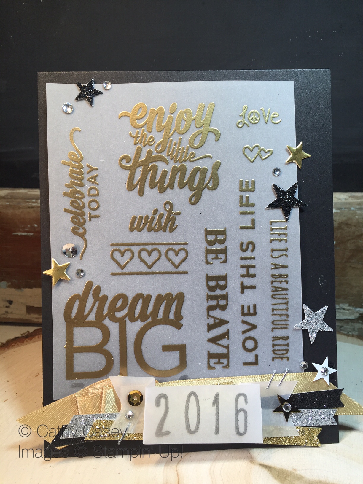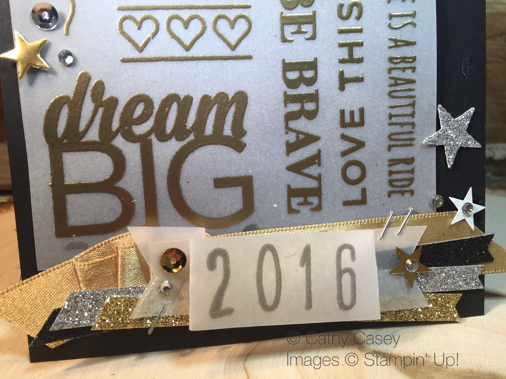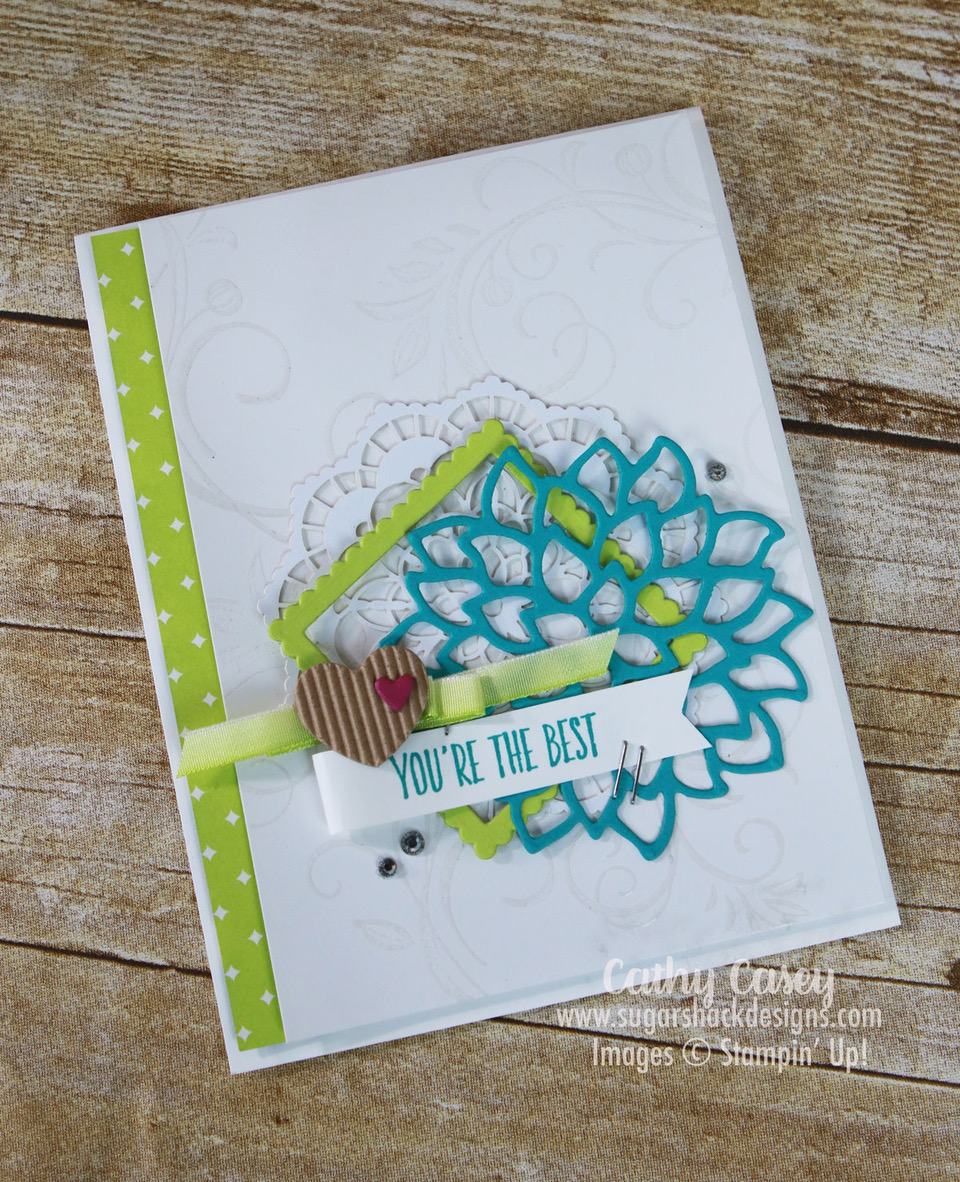 - The added ribbon and bling give the card some pop with the deeply saturated flower. I love the simple richness.