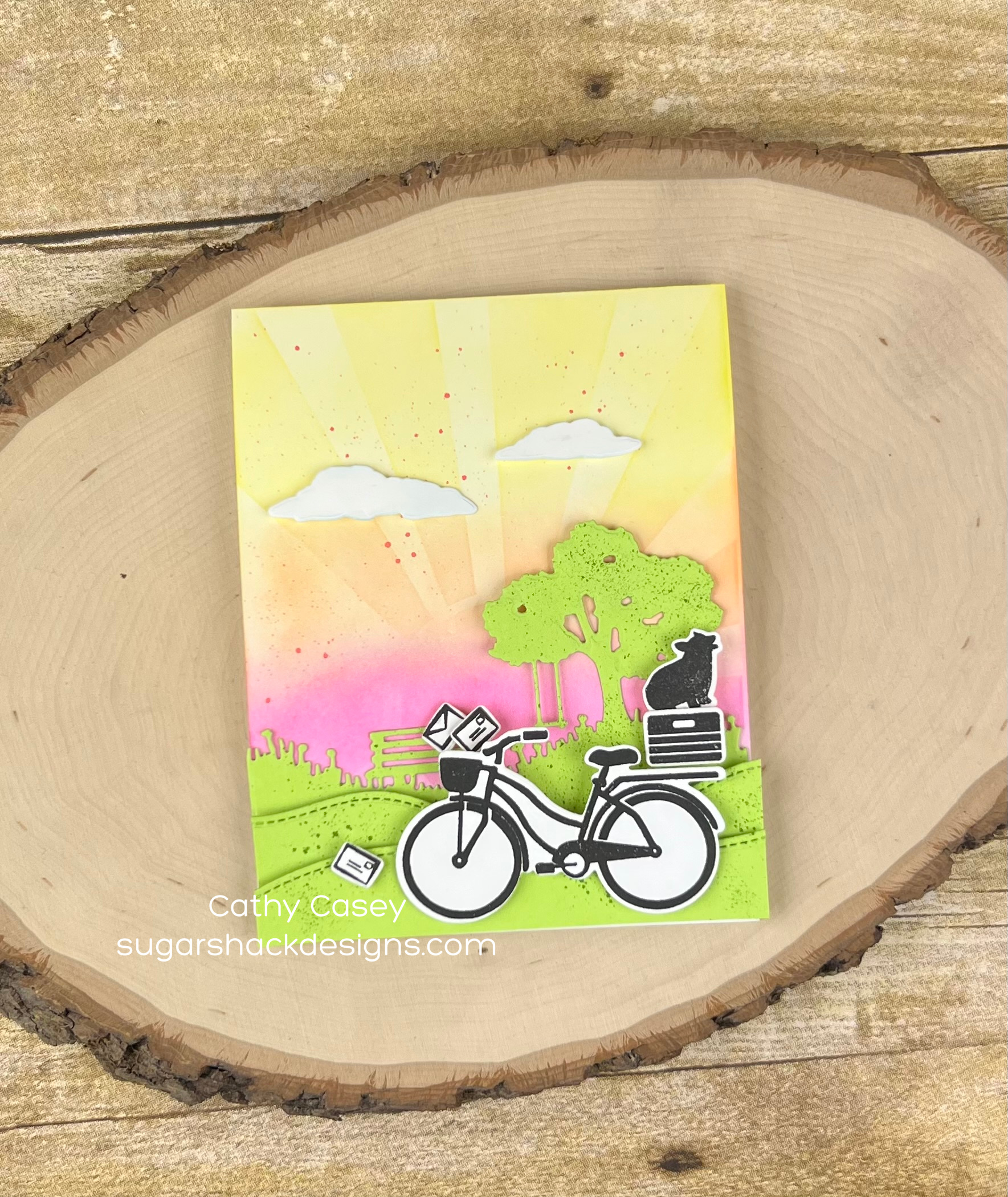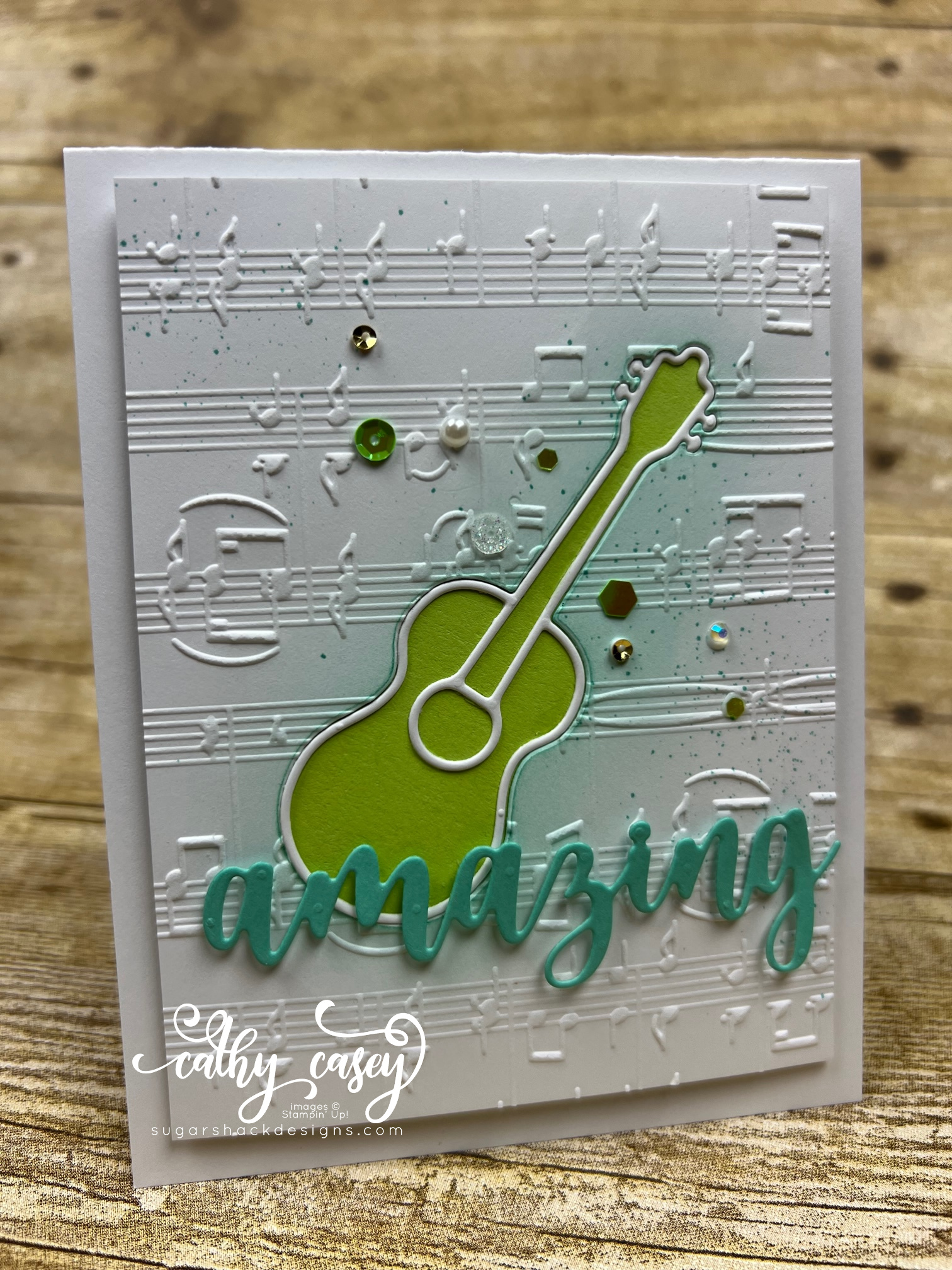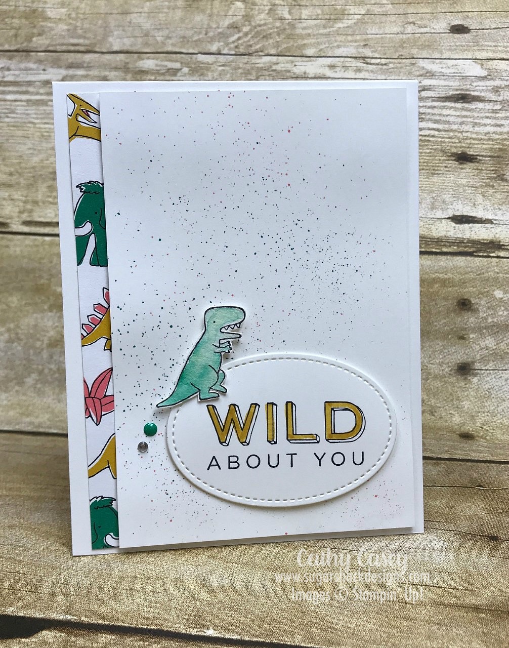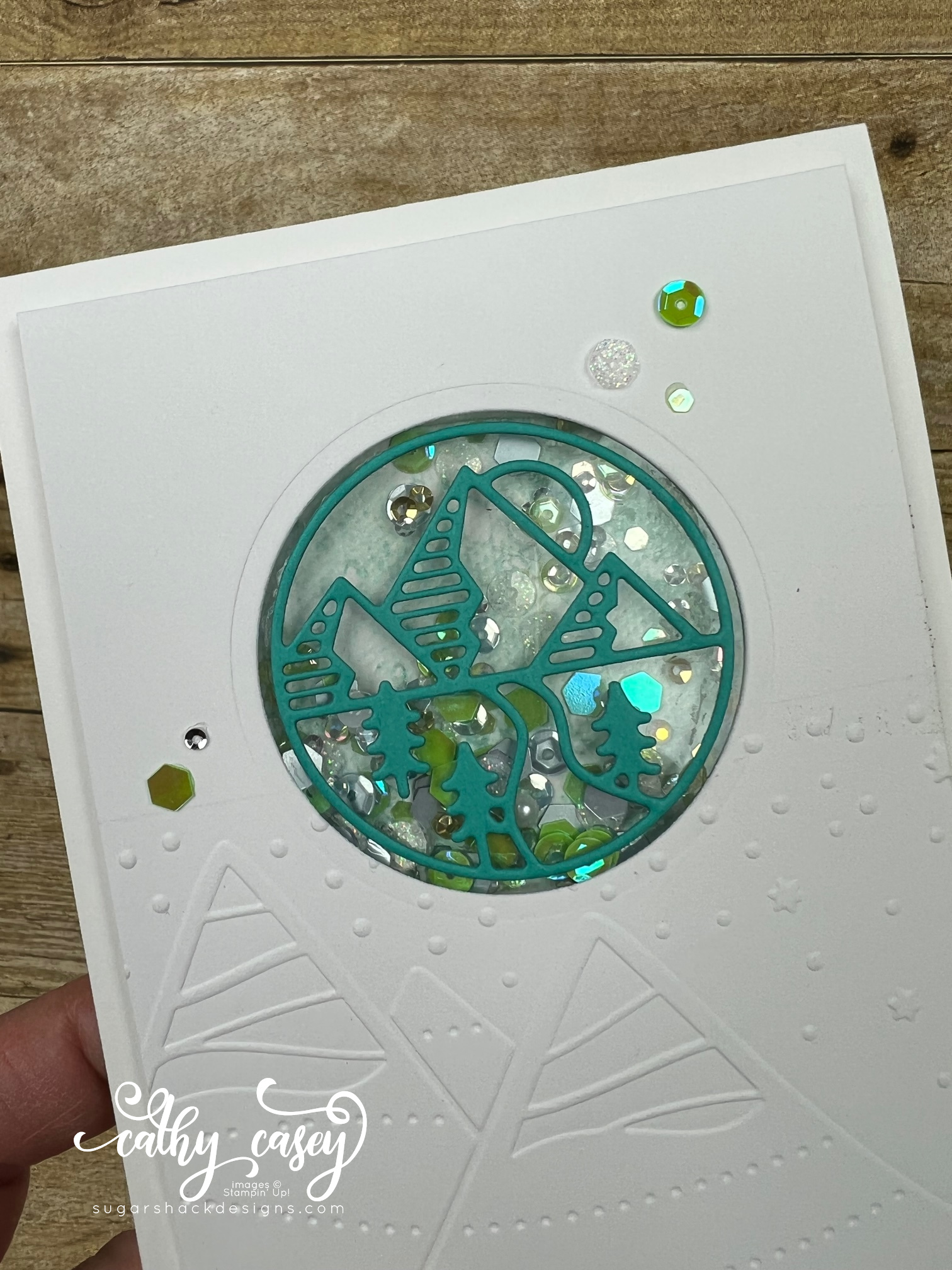 My second card features a shaker ornament also adorned with Festive Gatherings, this time in non-traditional colors. The shaker dies and embellishments are from Picket Fence Studios and I just love, love them! The shaker dies make it so simple to create shaker cards and I can’t wait to shaker all the things!! I got a whole set that includes several sizes of square and circle dies. I highly recommend!
